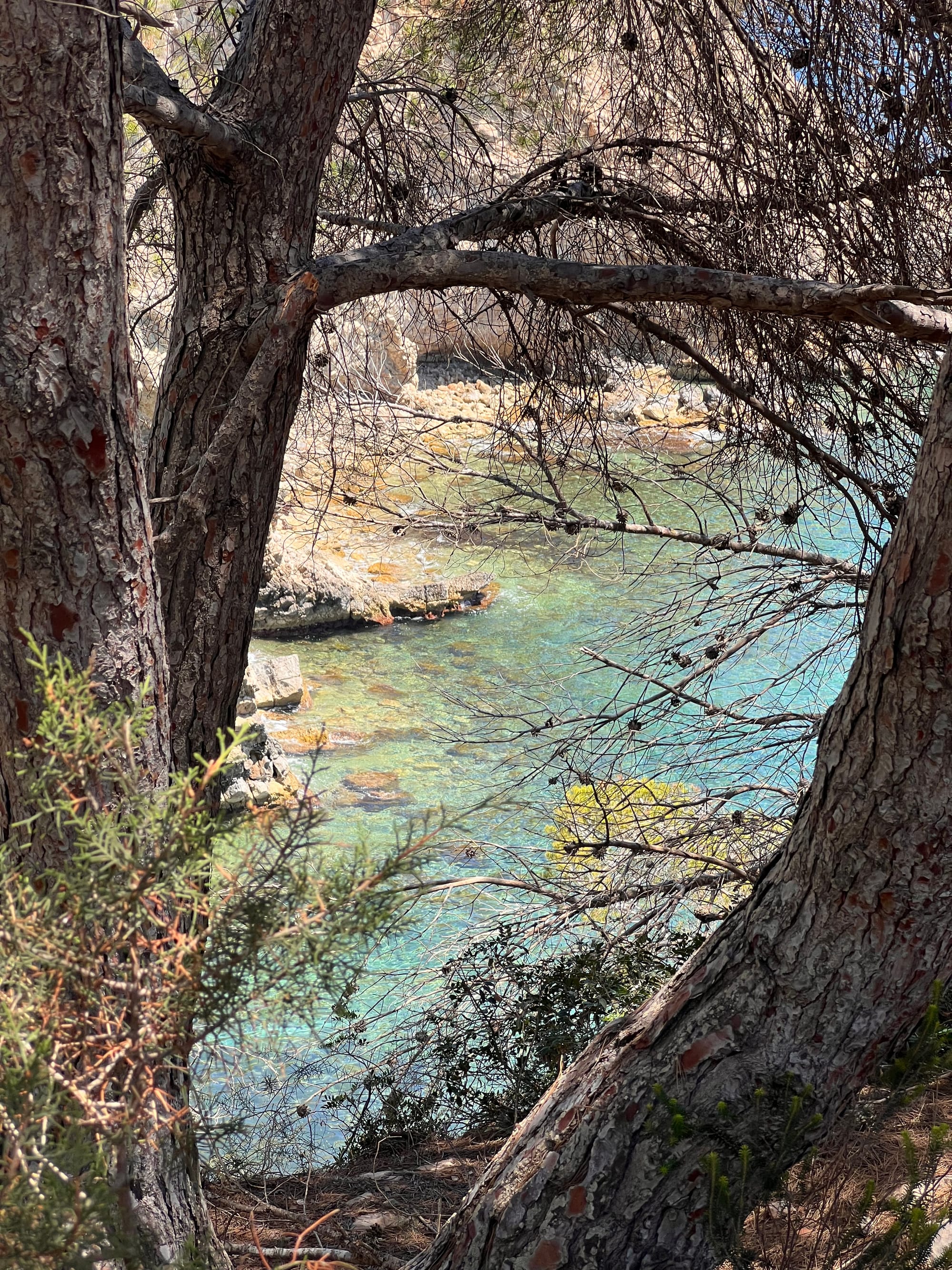Martin wachte zuerst auf. Es war um neun und da ich den Wecker um sechs Uhr ohne zu zögern ausstellte und verdrängen konnte, dass wir eigentlich den perfekten Sonnenaufgang genießen wollten, schliefen wir fabelhafte 10 Stunden und mehr bis jetzt. Ich lag im Schatten hinter der mitten Säule auf der kleinen Plattform auf der Spitze des Berges auf der Insel Ibiza. Martin köchelte unter seiner Decke vor sich hin und entschloss dann unseren Tag zu starten, für was ich dankbar war. Wir machten uns guter Dinge bereit für den Tag, nur hatte Martin beträchtliches Leid über seine Füße zu beklagen und so durfte er noch ein neues Pflaster von mir bekommen, ein schönes Buntes mit echten Dinosauriern drauf. Wir machten uns auf den Weg und ich durfte froh feststellen, dass es einen Weg hinunter vom Berg gab, der in die nördliche richtig führte. Ansonsten hätten wir für mindestens zwei Stunden den gestrigen Weg zurück in die nächste Stadt nehmen müssen. So kamen wir nach einer längeren Weile an einer Straße an und hatten vor den Bus zu nehmen, bis uns klar wurde, dass jener nur einmal am Tag hier vorbei fuhr und wir nicht bis zwei Uhr nachmittags warten würden. Also liefen wir an der Straße entlang wie wir es schon für so unzählbare Kilometer getan hatten und kamen als Belohnung für den Aufwand irgendwann in einer kleinen Stadt an. Dort kauften wir eine ganze Menge an leckeren Dingen ein. Für unglaubliche fünfzehn Euro holten wir Obst und Gemüse, eine Packung Hafermilch und durch Martins Einfall eine Dose mit einem brasilianischen Süßgetränk das leckerer nicht hätte sein können. Es bestand aus einer roten Beere und hatte den Namen Guaraná. Sehr lecker. Wir setzten uns für eine Weile in die Sonne vor dem Markt und genossen die pflanzliche Milch, eine Kuhmilchalternative die ich seit der Grundschule bevorzugte, weil mein Dad mir mal erzählte wie Kälbchen von ihren Müttern entfernt werden und mit Zuckerwasser aufgezogen werden, damit wir stattdessen die Milch trinken können. Außerdem finde ich es pervers, dass wir als Menschen das einzige Lebewesen sind, das selbst als erwachsenes Tier noch Muttermilch zu sich nimmt. Muss das sein? Naja, zum Glück sind Kühe ja ansonsten unproblematisch für die Welt, sonst könnte man sich ja noch weiter darüber beschweren...